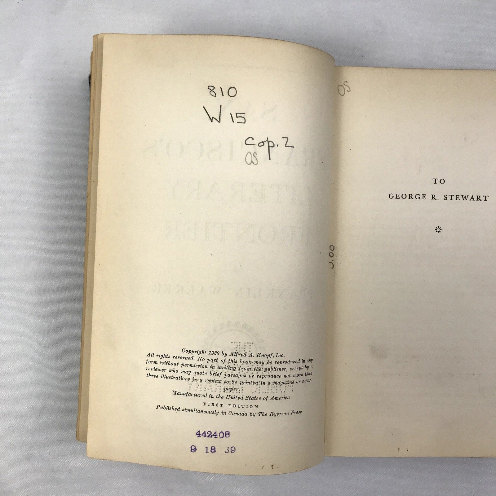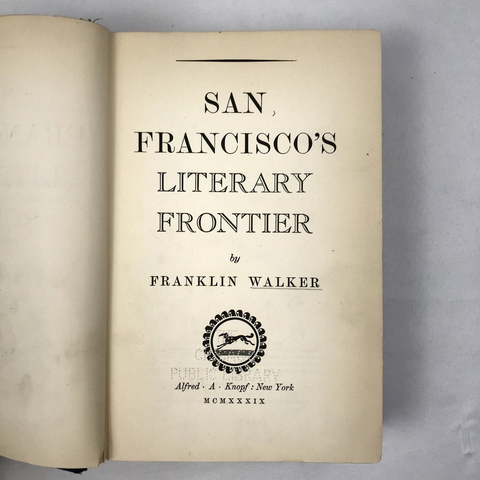 San Francisco's Literary Frontier Book by Franklin Walker 1939 First Edition