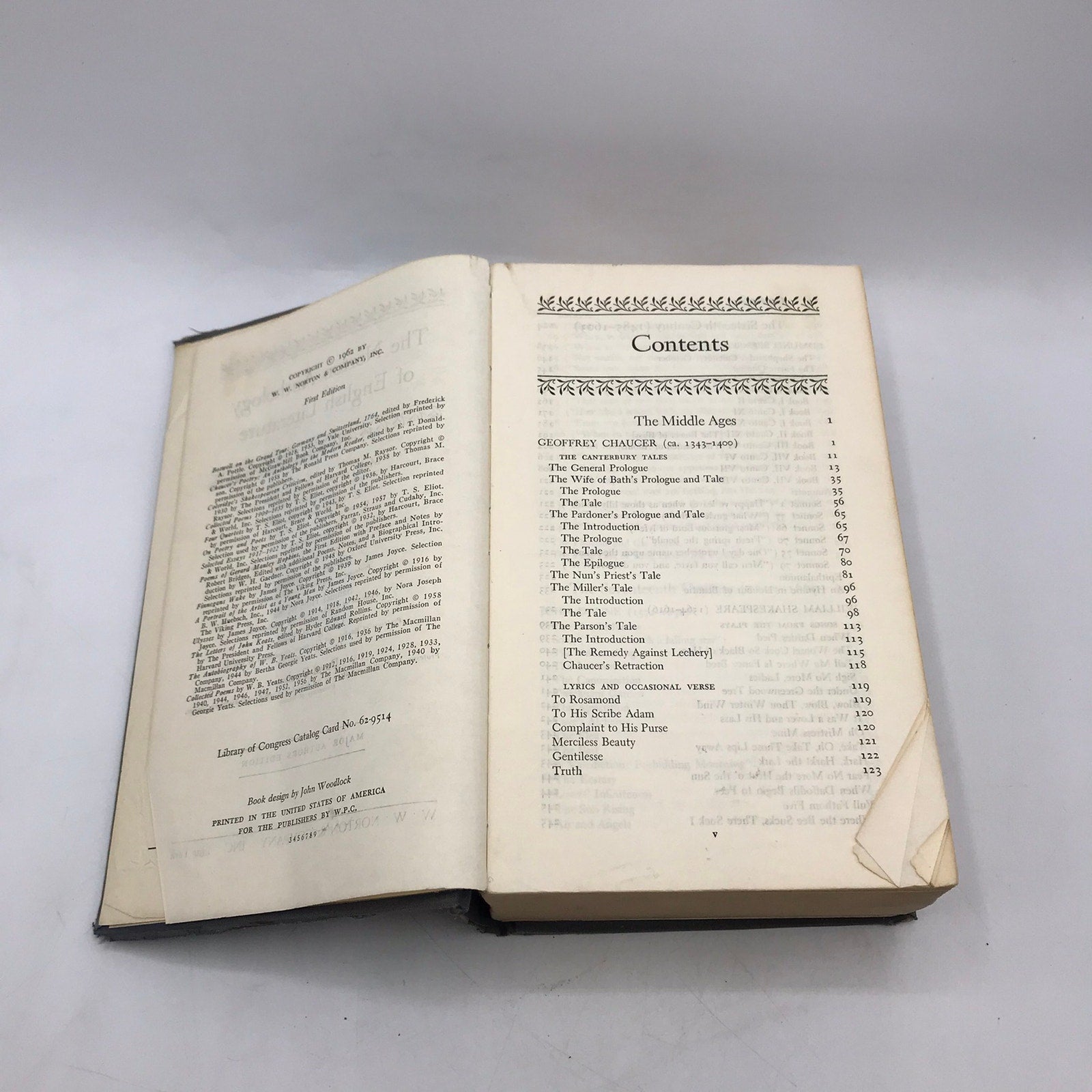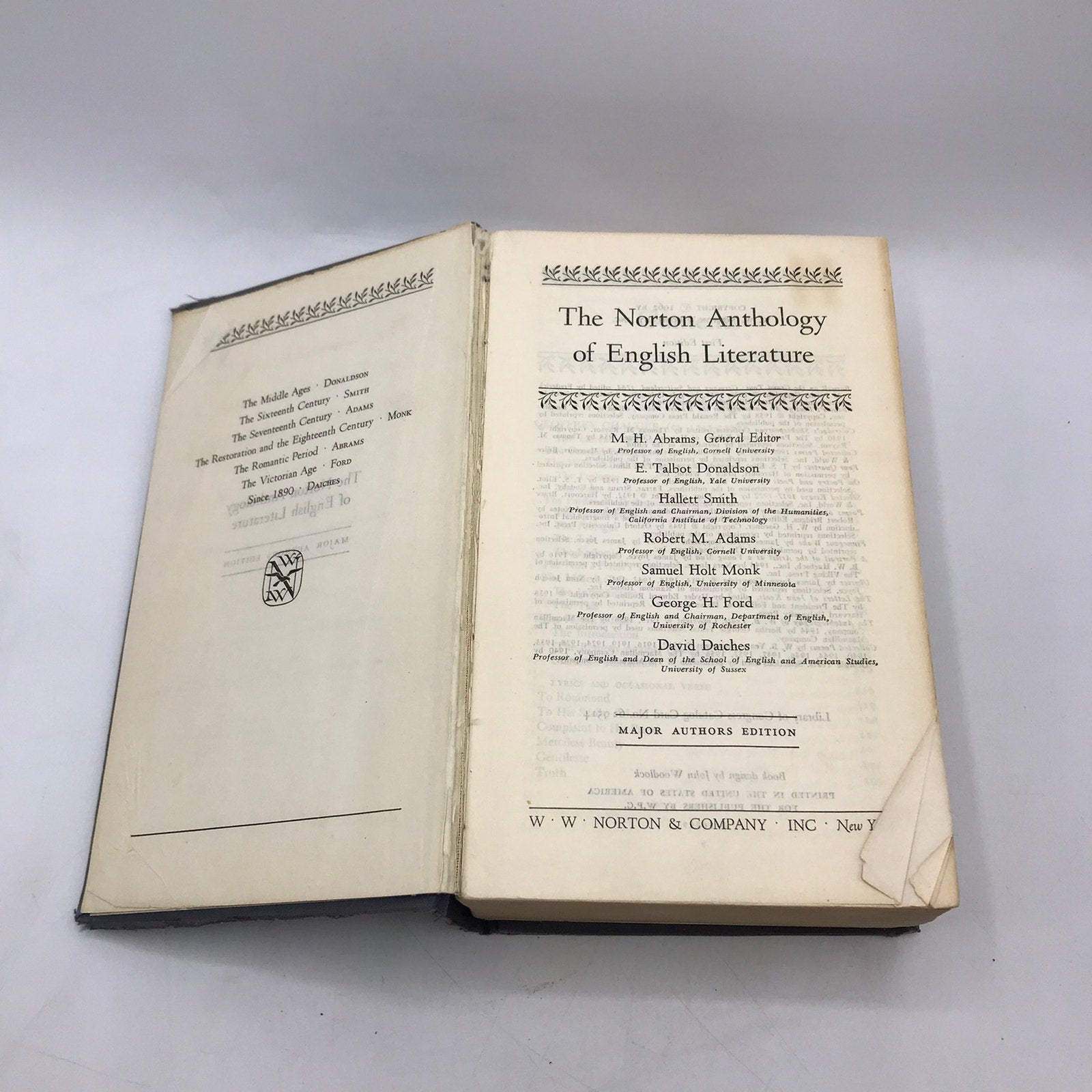 The Norton Anthology of English Literature Major Authors Middle Ages Education 1962 First Edition